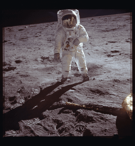 Astronaut Buzz Aldrin on the Moon during Apollo 11 (1969), fulfilling President Kennedy’s lunar landing goal.